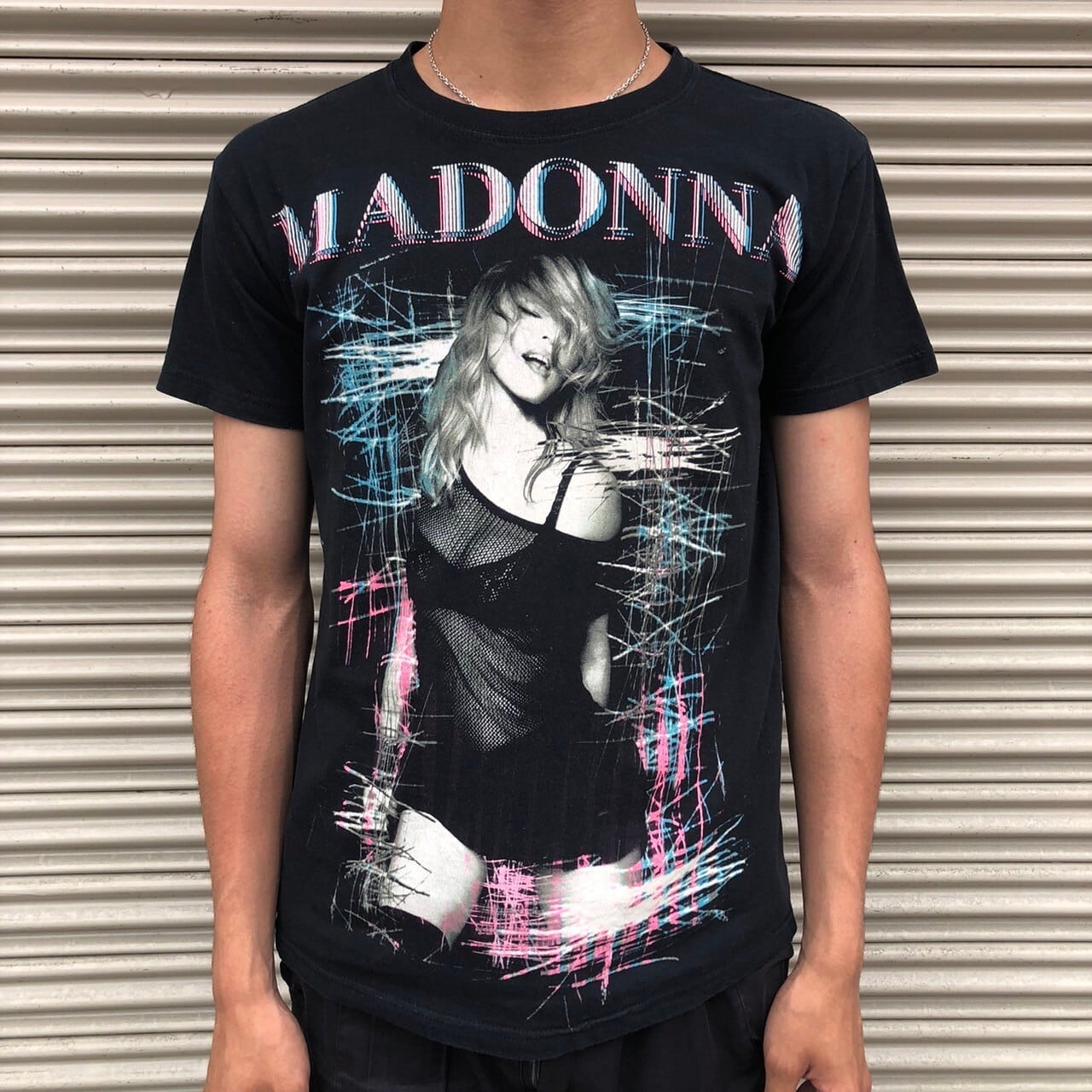 Gildan MADONNA マドンナ プリント Tシャツ 半袖 カットソー ブラック 黒 ギルダン コットン ミュージック 丸首 クルーネック ツアー S