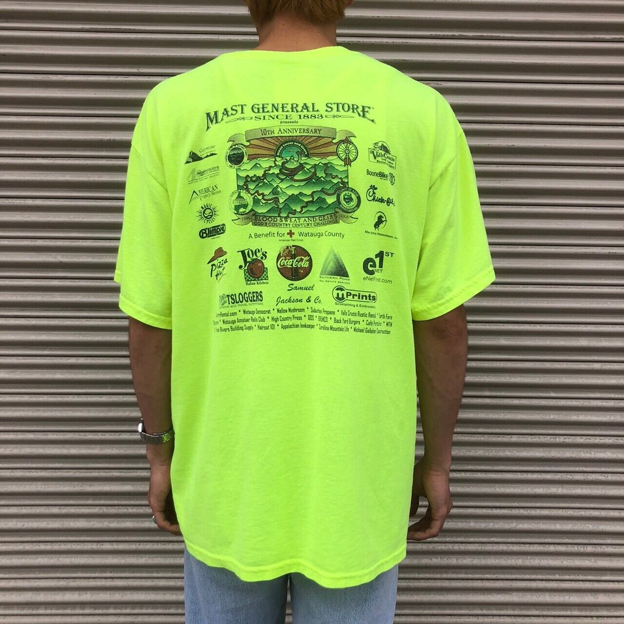00s Gildan ギルダン Blood Sweat and Gears 両面プリントTシャツ 半袖カットソー 蛍光色 自転車ロードレース イエロー 90s L