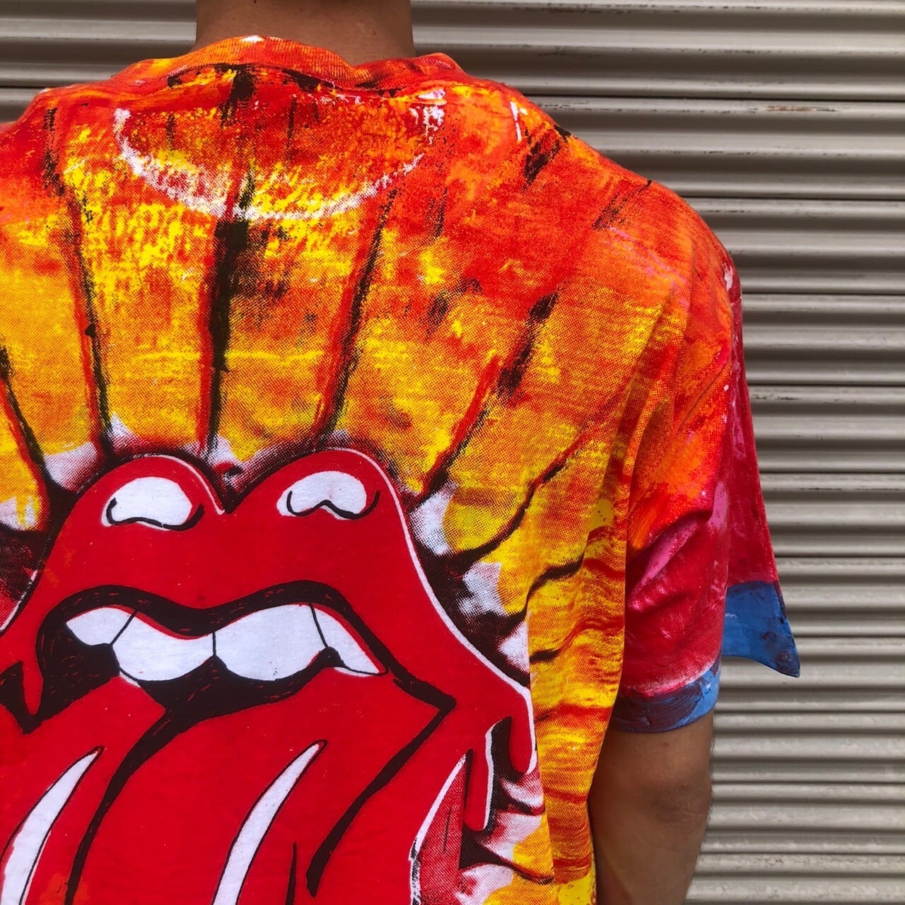 G Rags 72 The Rolling Stones ローリングストーンズ タイダイ染め ブート 大判プリント 半袖Tシャツ バンドT バンT 総柄 レッド L