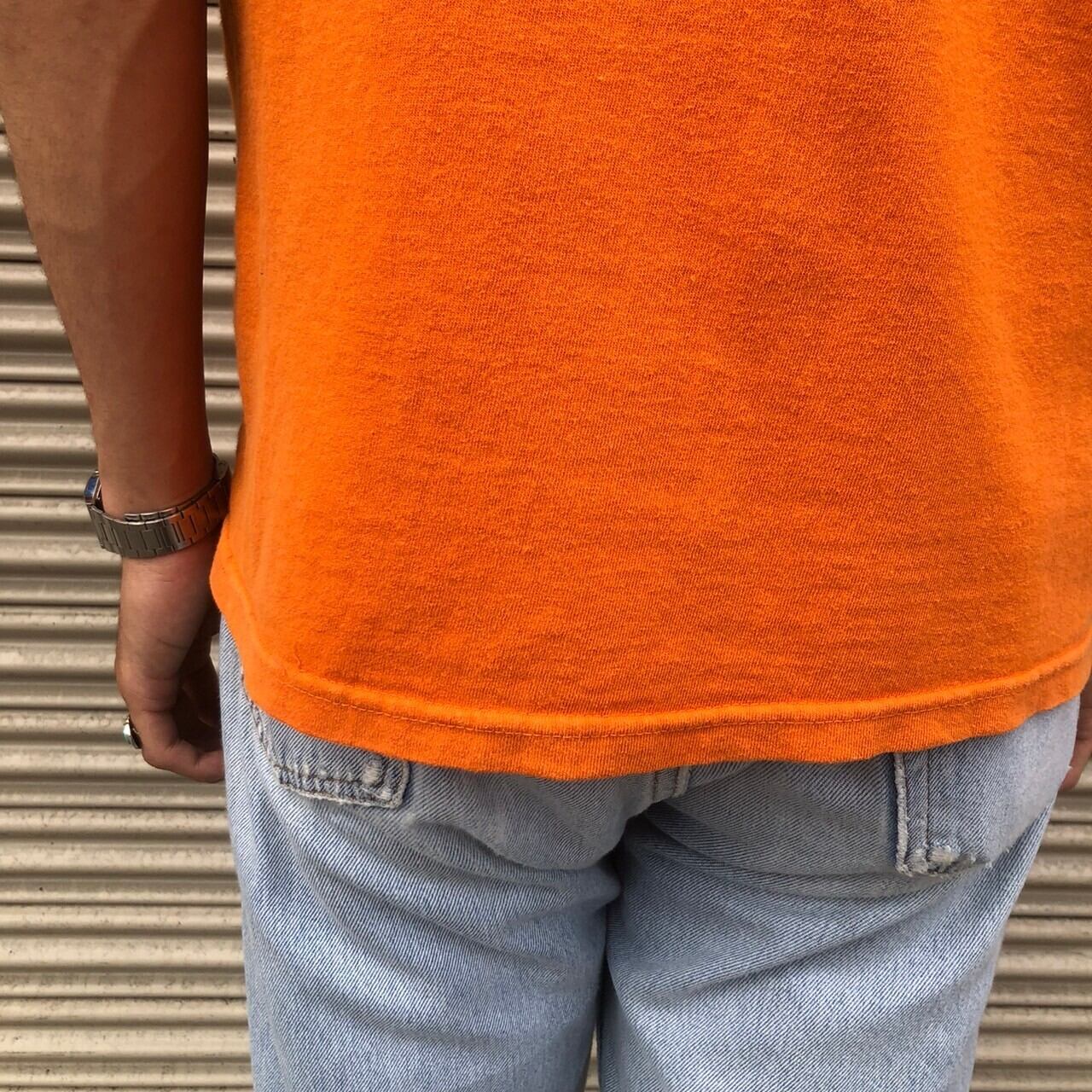 90s 00s USA製 anvil プリント Tシャツ 半袖カットソー アンビル Shoot Back オレンジ ヴィンテージ クルーネック 丸首 made in usa M