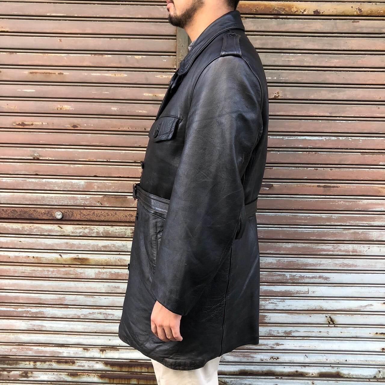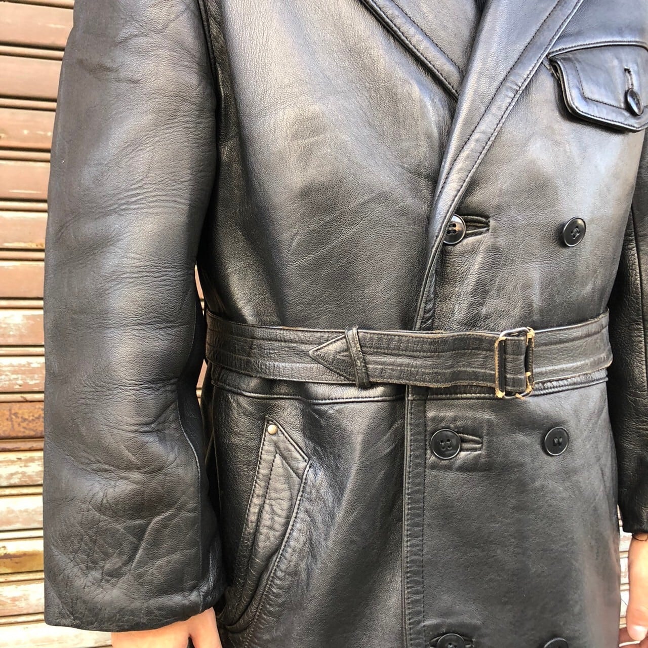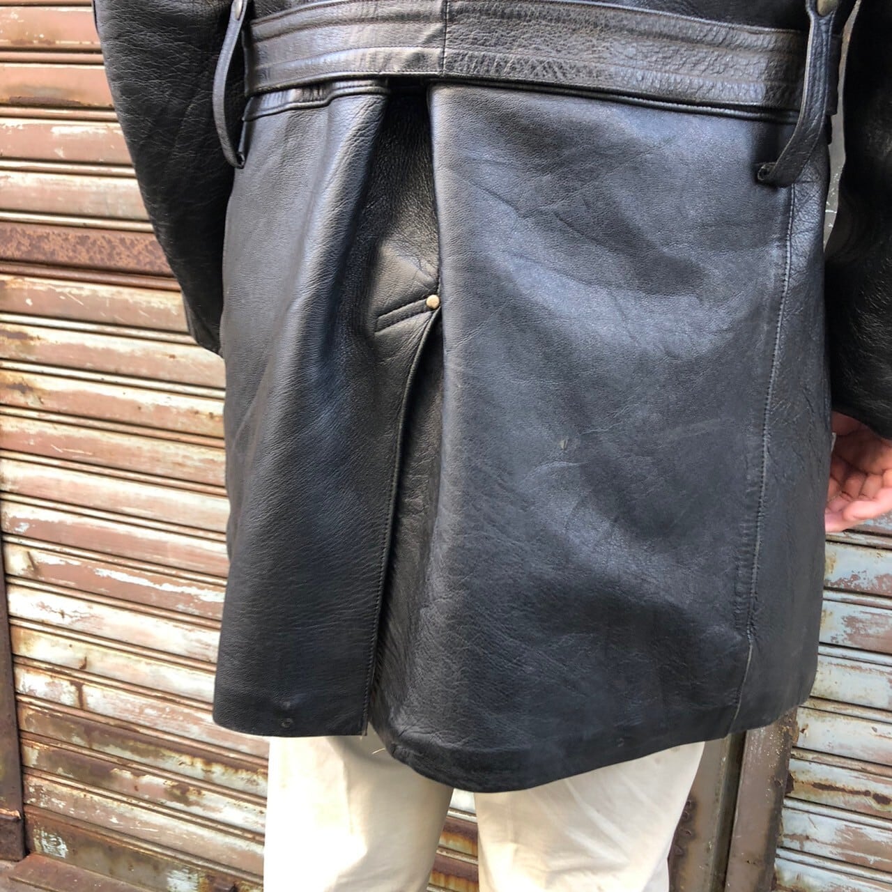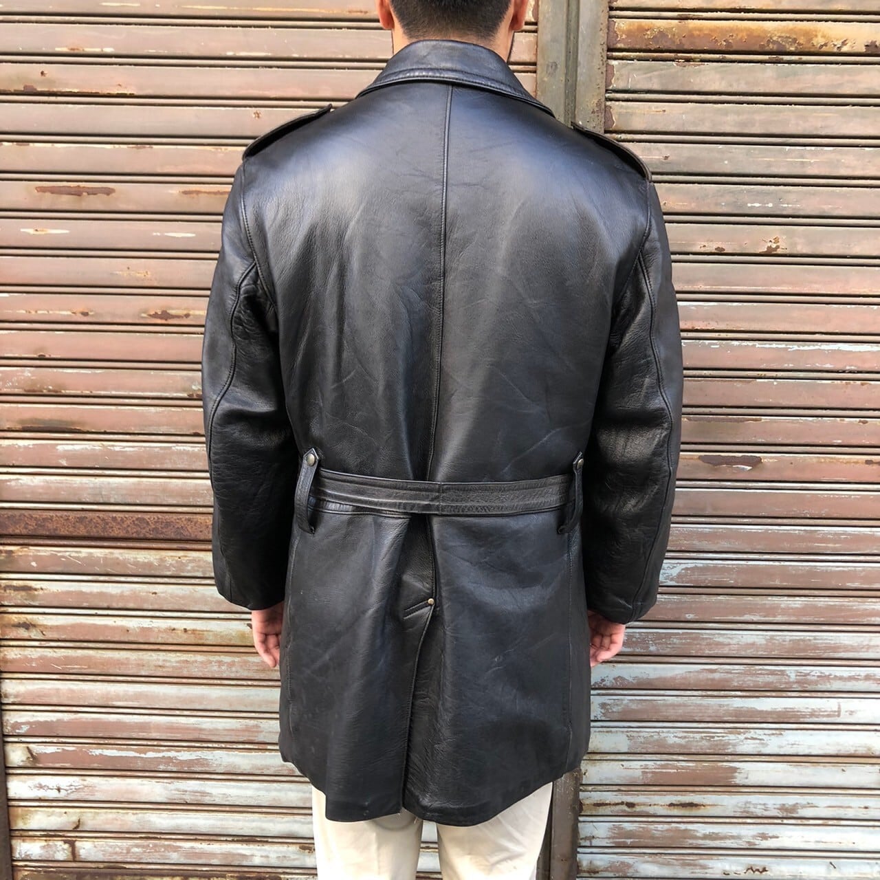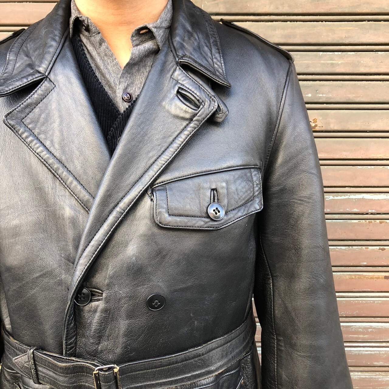 良品 70s 貴重なフランス軍 実物 France Army ヴィンテージ レザーコート イギリス軍 ライダース 羊革 ラムスキン カーコート 60s トレンチ