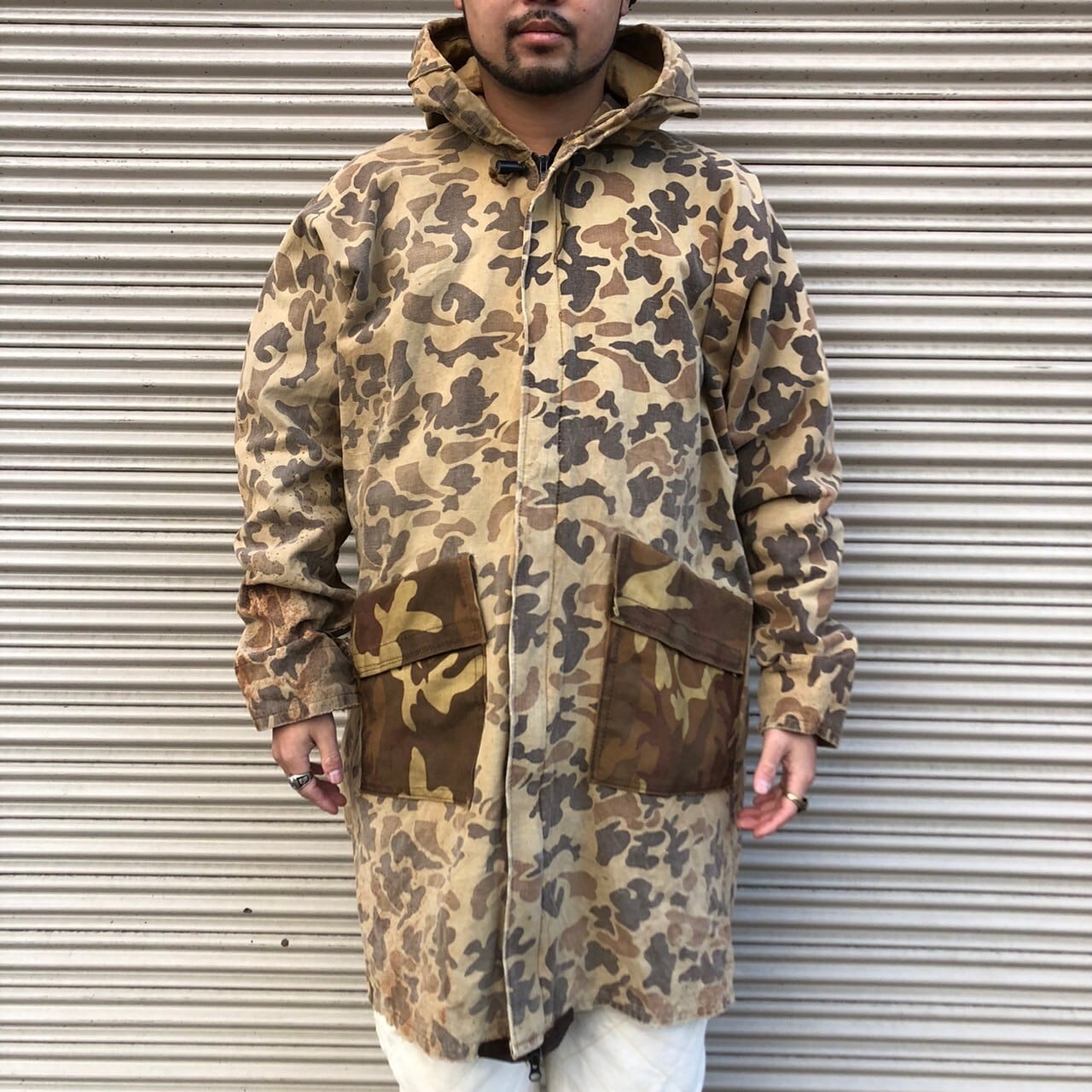 貴重 USA製 70s Converse コンバース ダックハント カモ 迷彩 レインコート ヴィンテージ ゴム引きコットン 80s パーカー モッズコート L