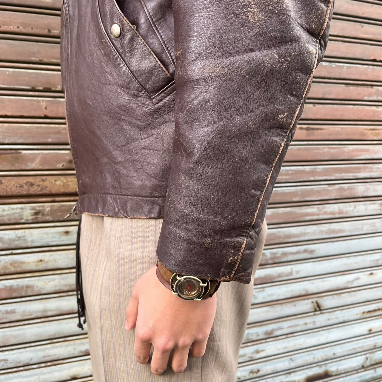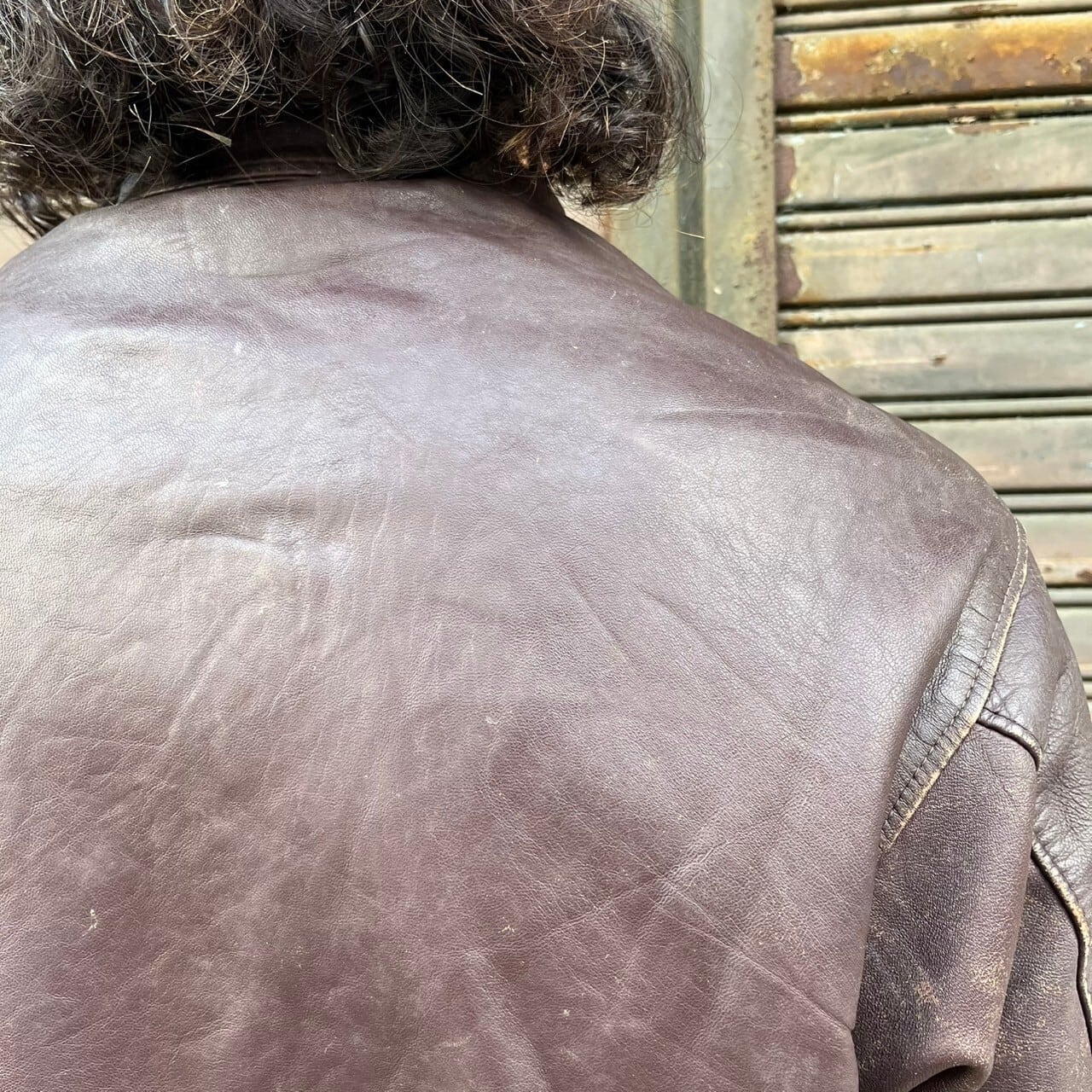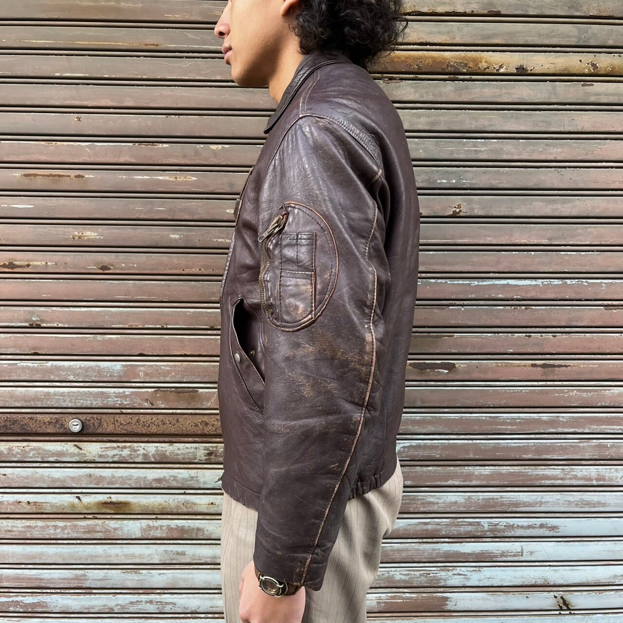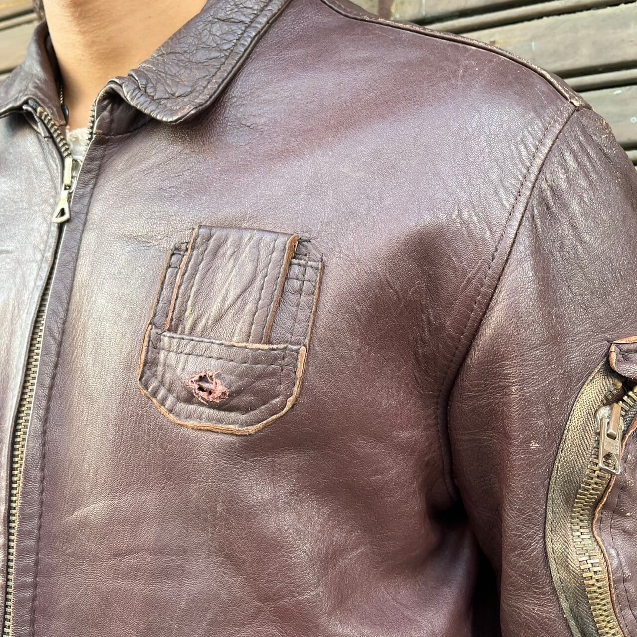 希少 60s フランス軍 ヴィンテージ 空軍 パイロット ブラウン レザージャケット フライトジャケット raf ライダース 羊革 70s 96L