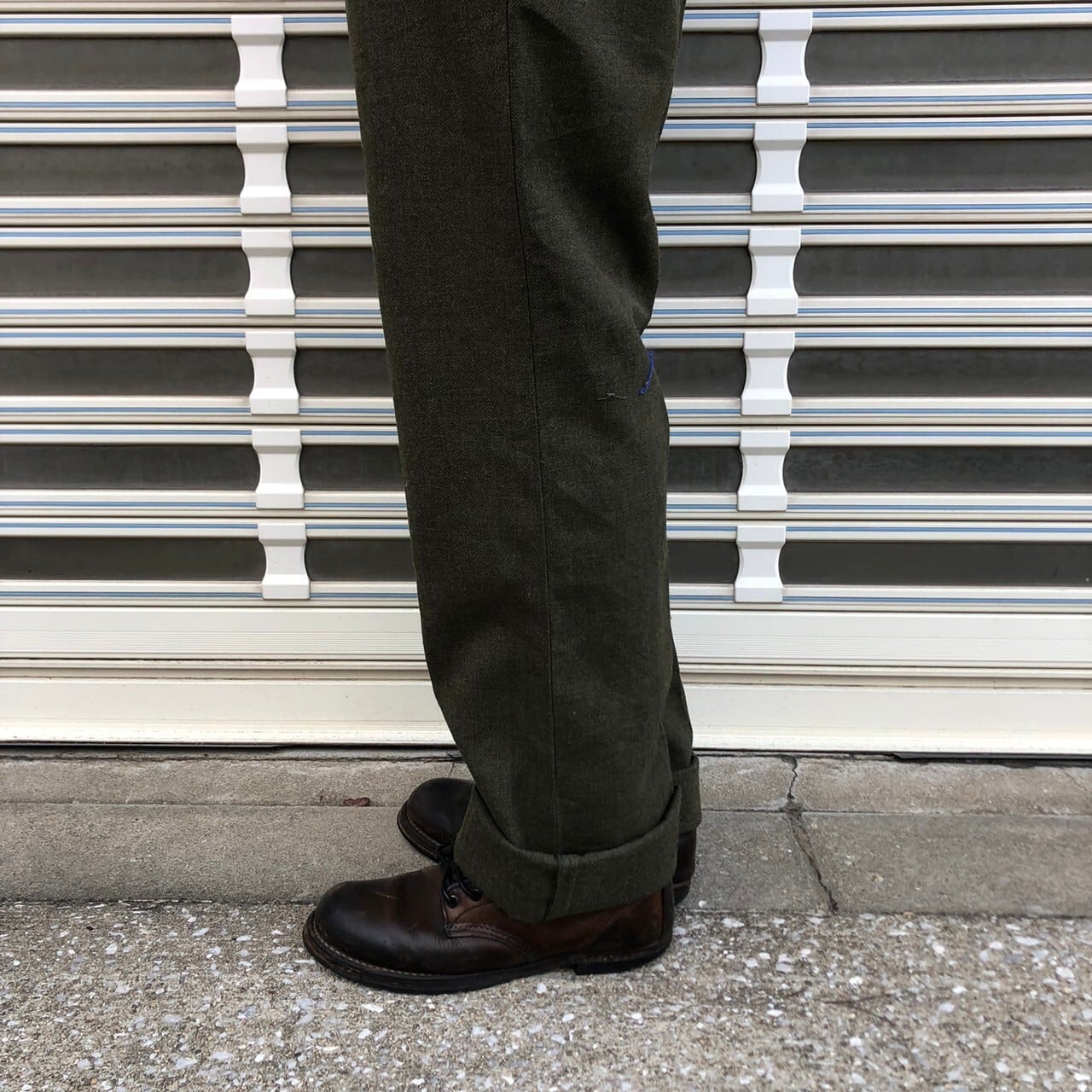 軍物トラウザーズパンツのような作りのウールスラックスです。