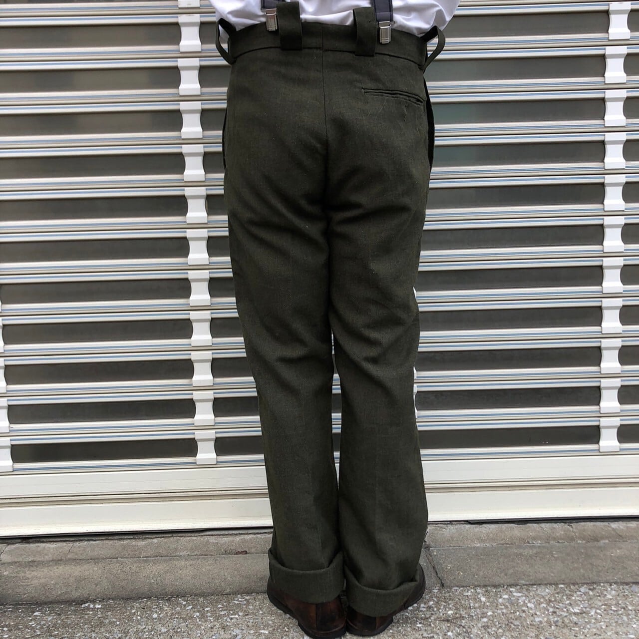 60s イギリス ユーロ ヴィンテージ ミリタリー メルトン ウール ドレス パンツ ヨーロッパ古着 ワーク イギリス軍 サスペンダー 70s 92cm
