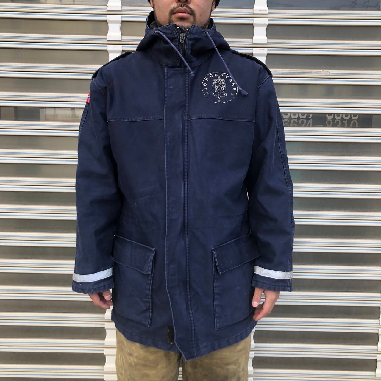 ノルウェー国旗と胸にステンシルが入ったフィールドパーカーです。