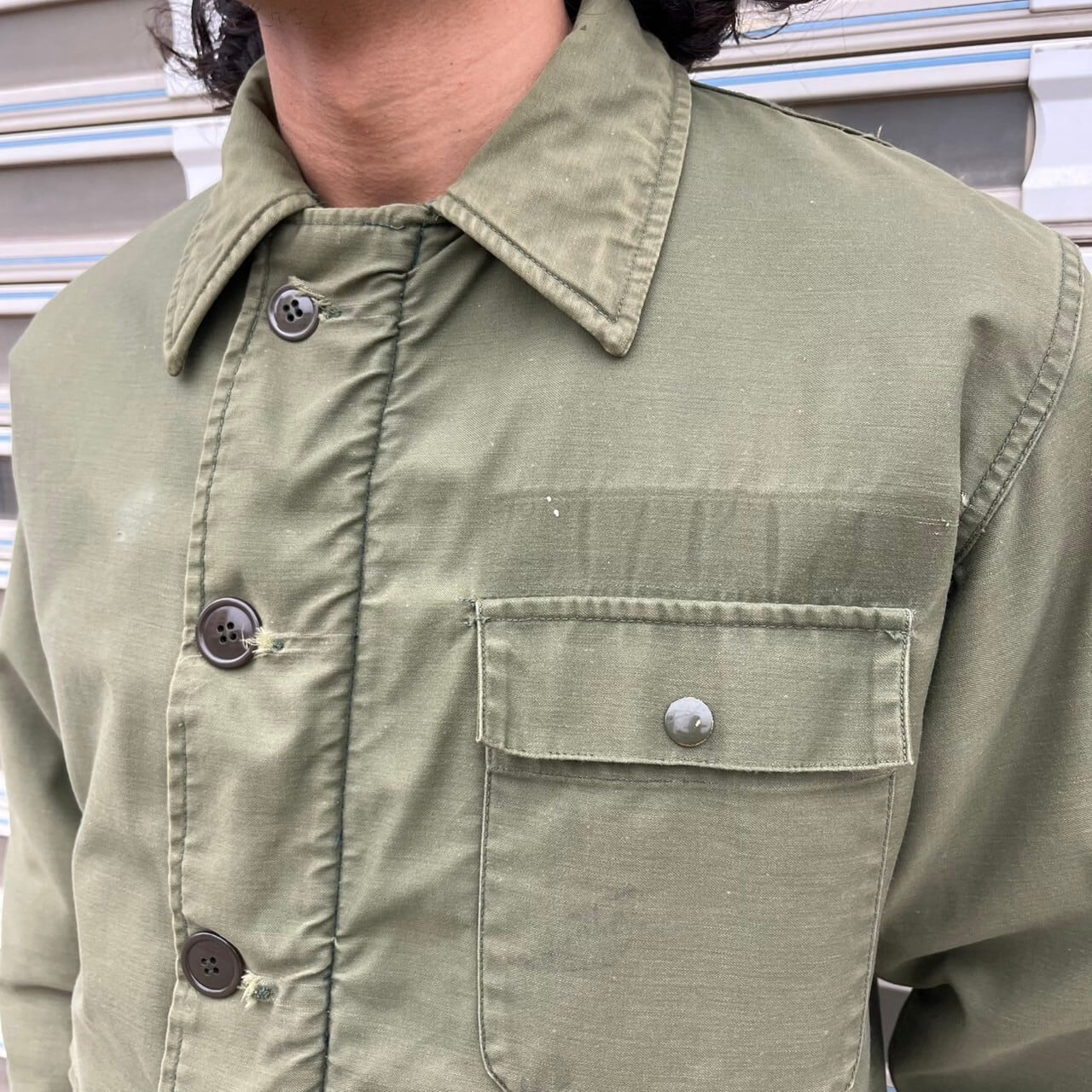 80s 米軍 実物 A-2 デッキジャケット ミリタリー ヴィンテージ L USN フライト 裏ボア N-1 海軍 カーキ オリーブ シップボード 70s