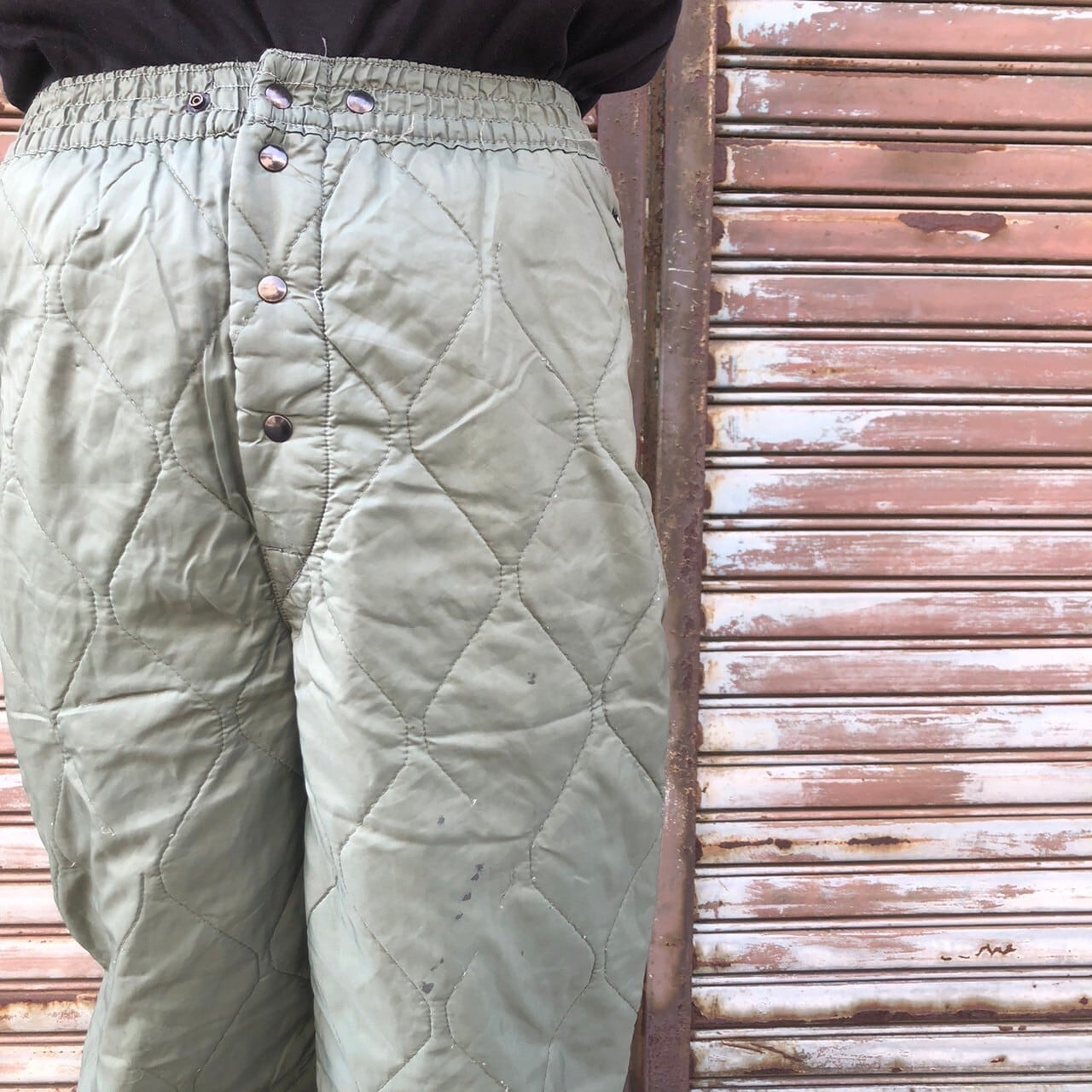 70s 米軍 実物 CWU-9/P ナイロン キルティング ライナーパンツ S セージグリーン ヴィンテージ ミリタリー ナイロン U.S.AIR FORCE