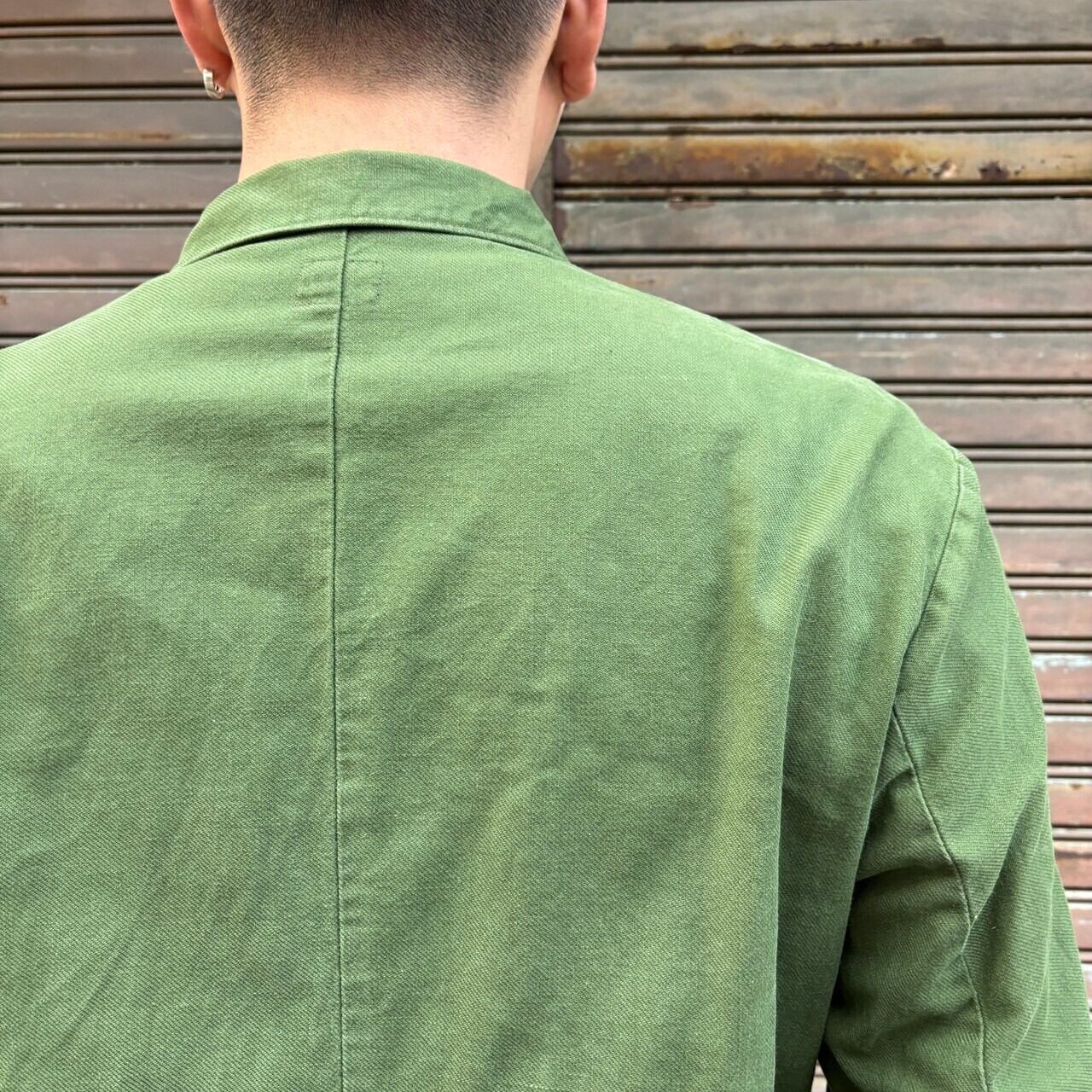 70s スウェーデン軍 実物 ワークジャケット ユーロ グリーン ミリタリー C46 ヴィンテージ コットンツイル カバーオール ワークシャツ 60s