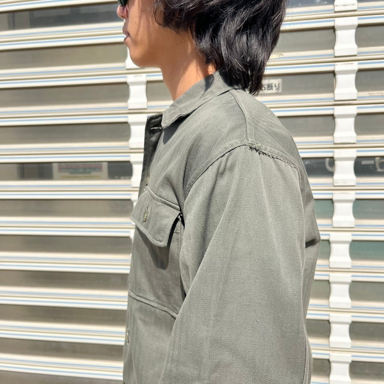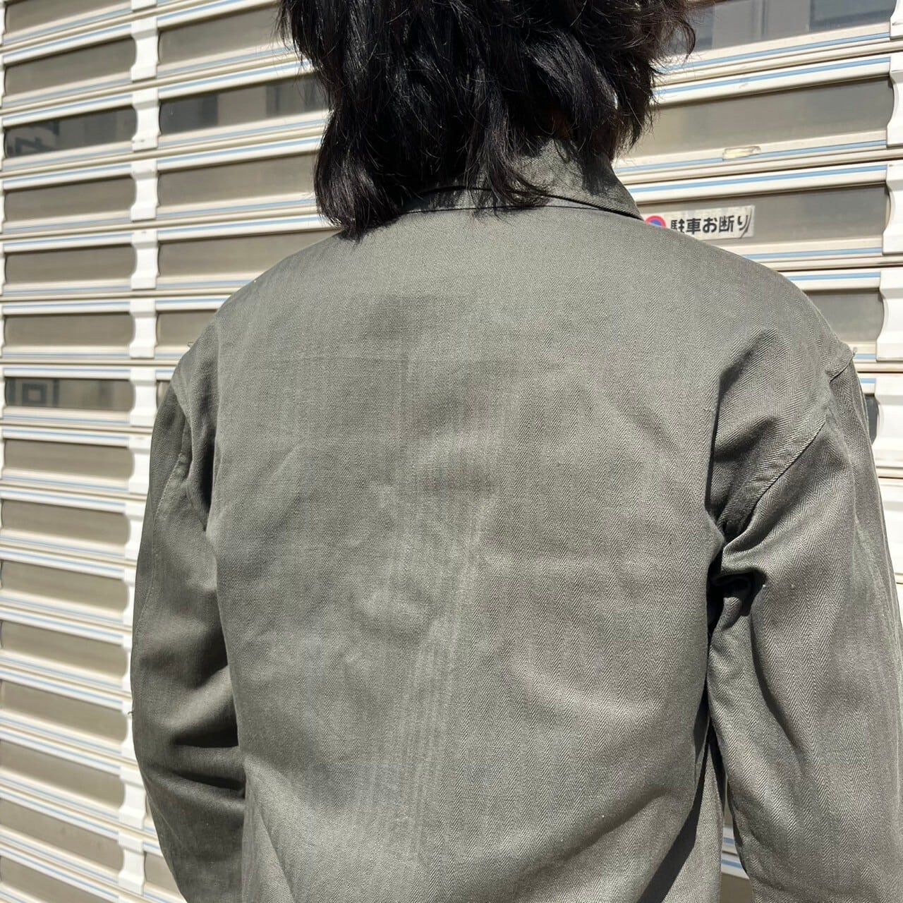 50s ユーロ ヴィンテージ ワークジャケット ヘリンボーン オリーブドラブ S コットン ミリタリー ワークシャツ ミリタリーシャツ 60s